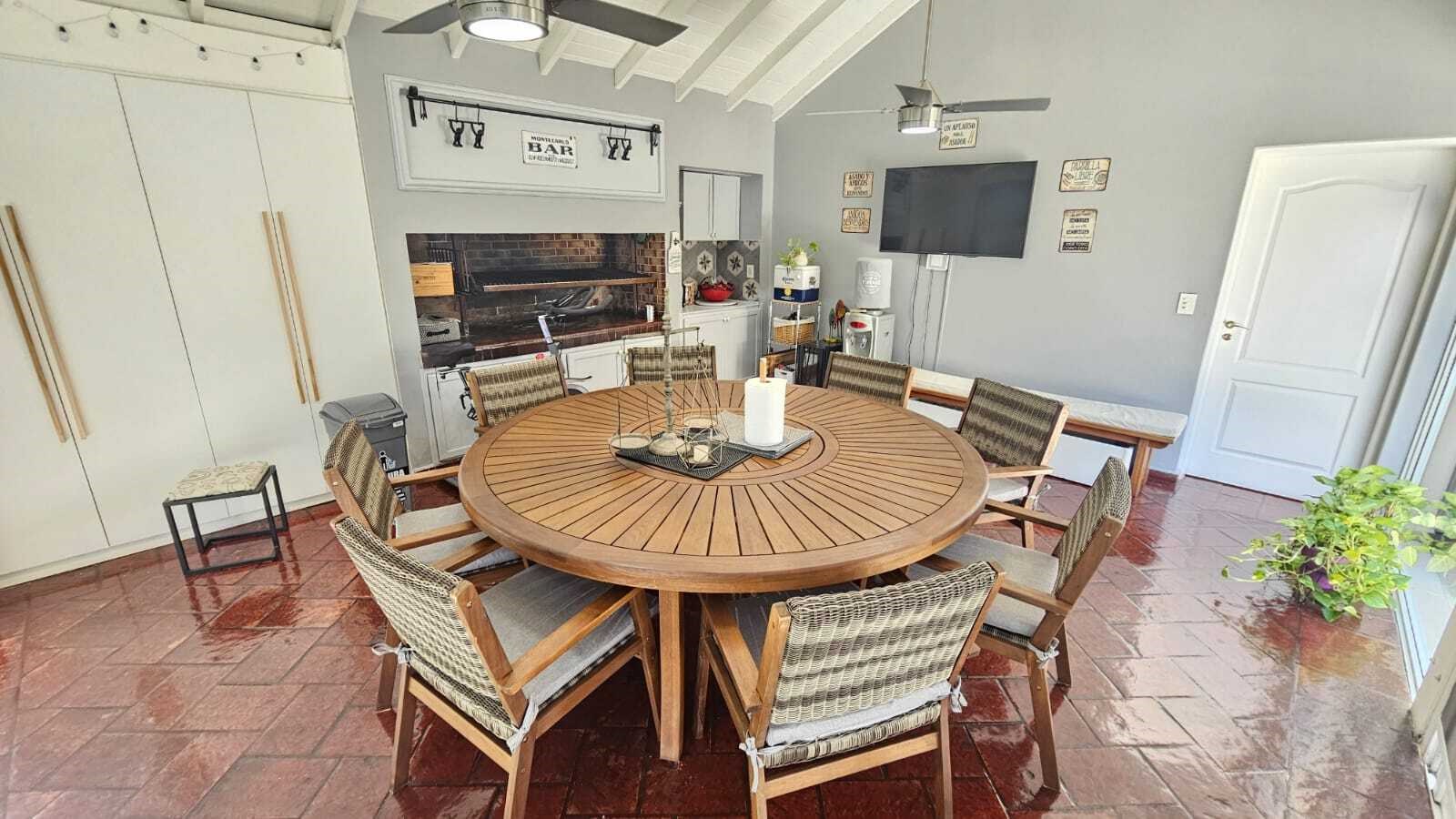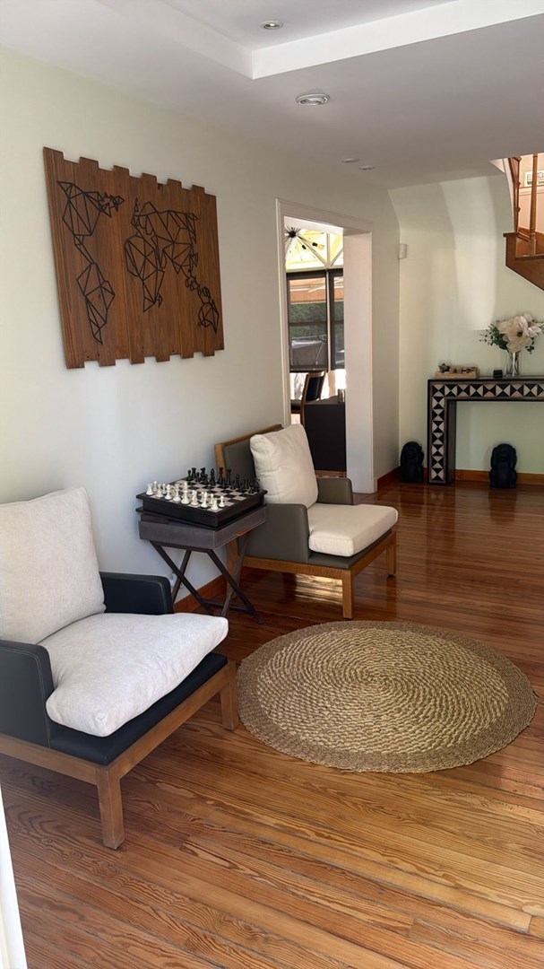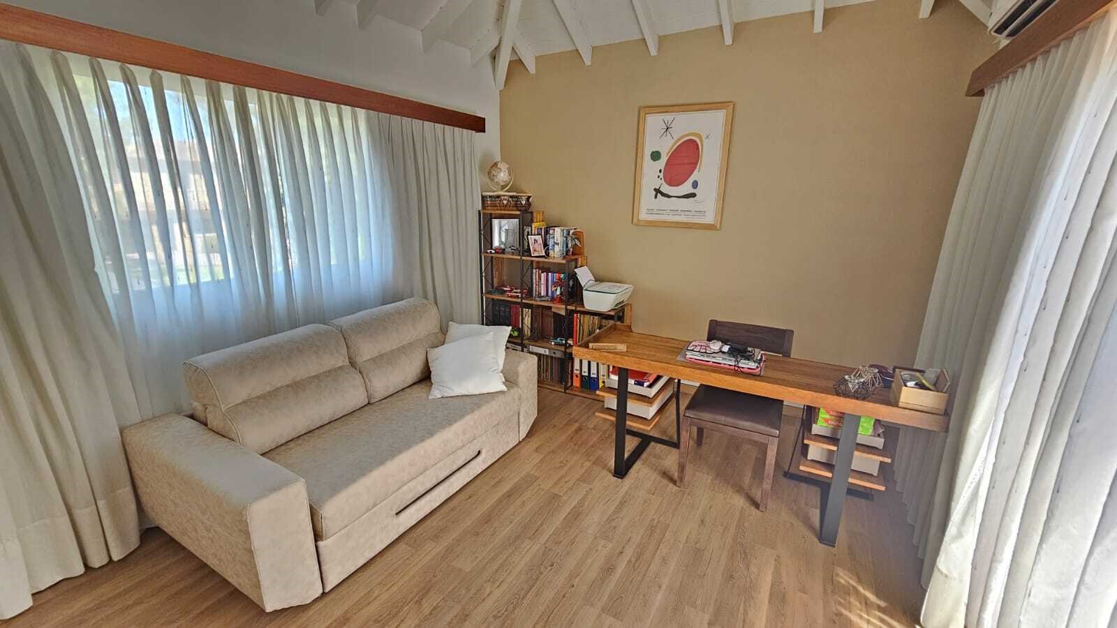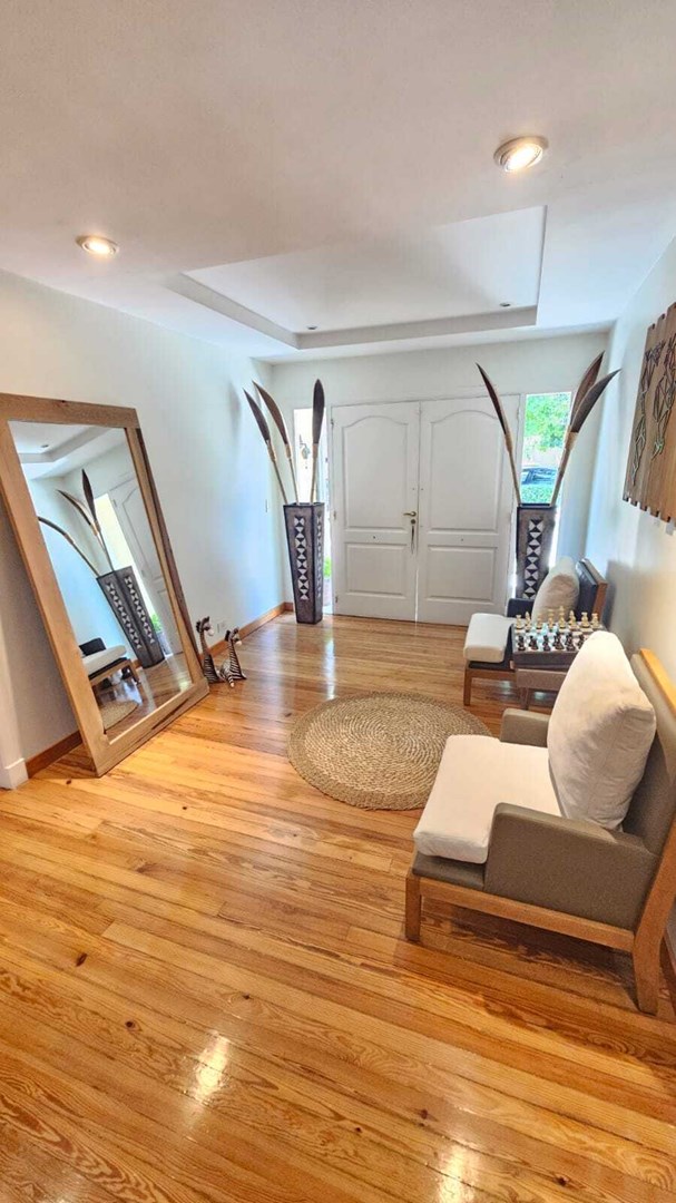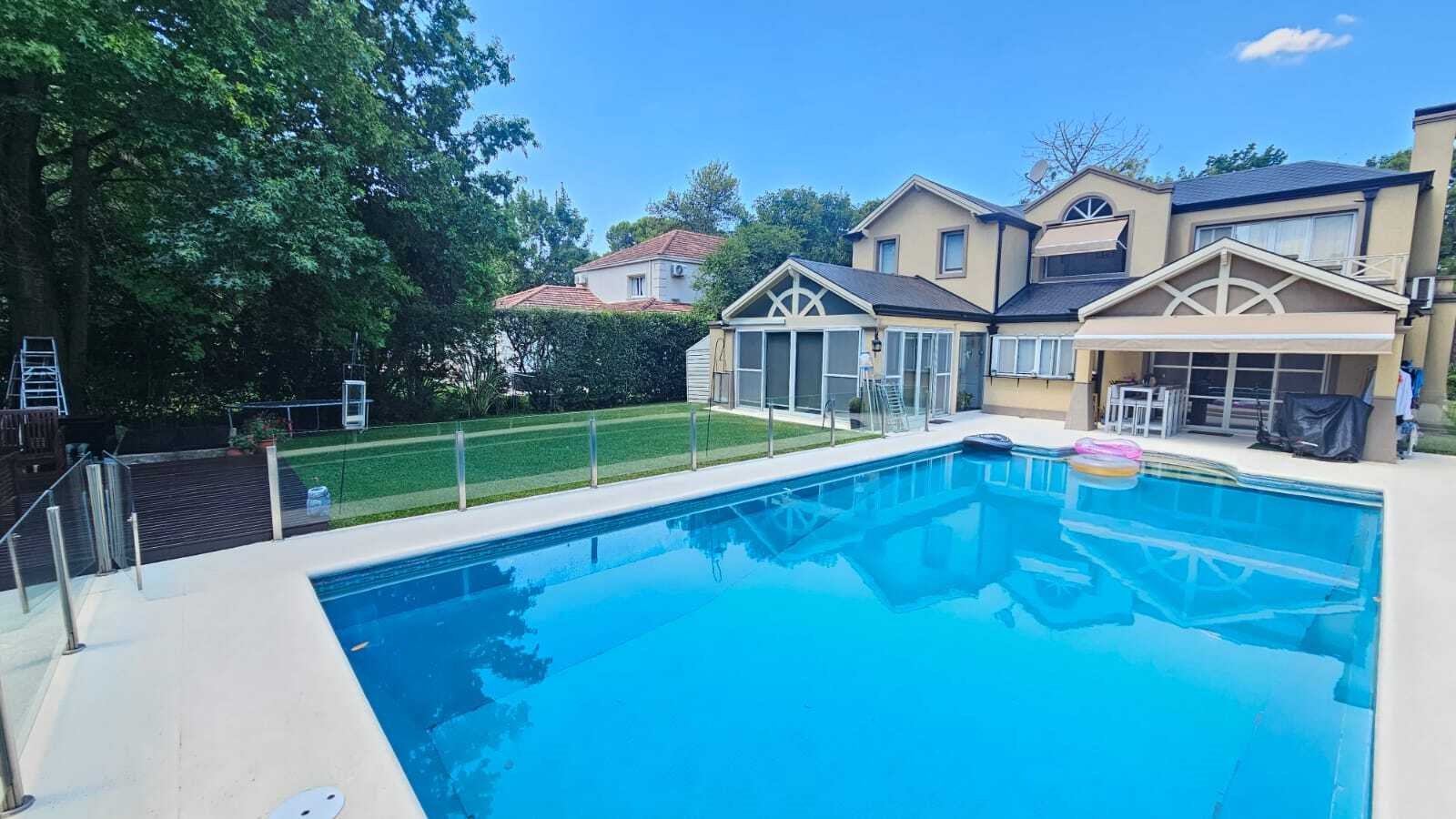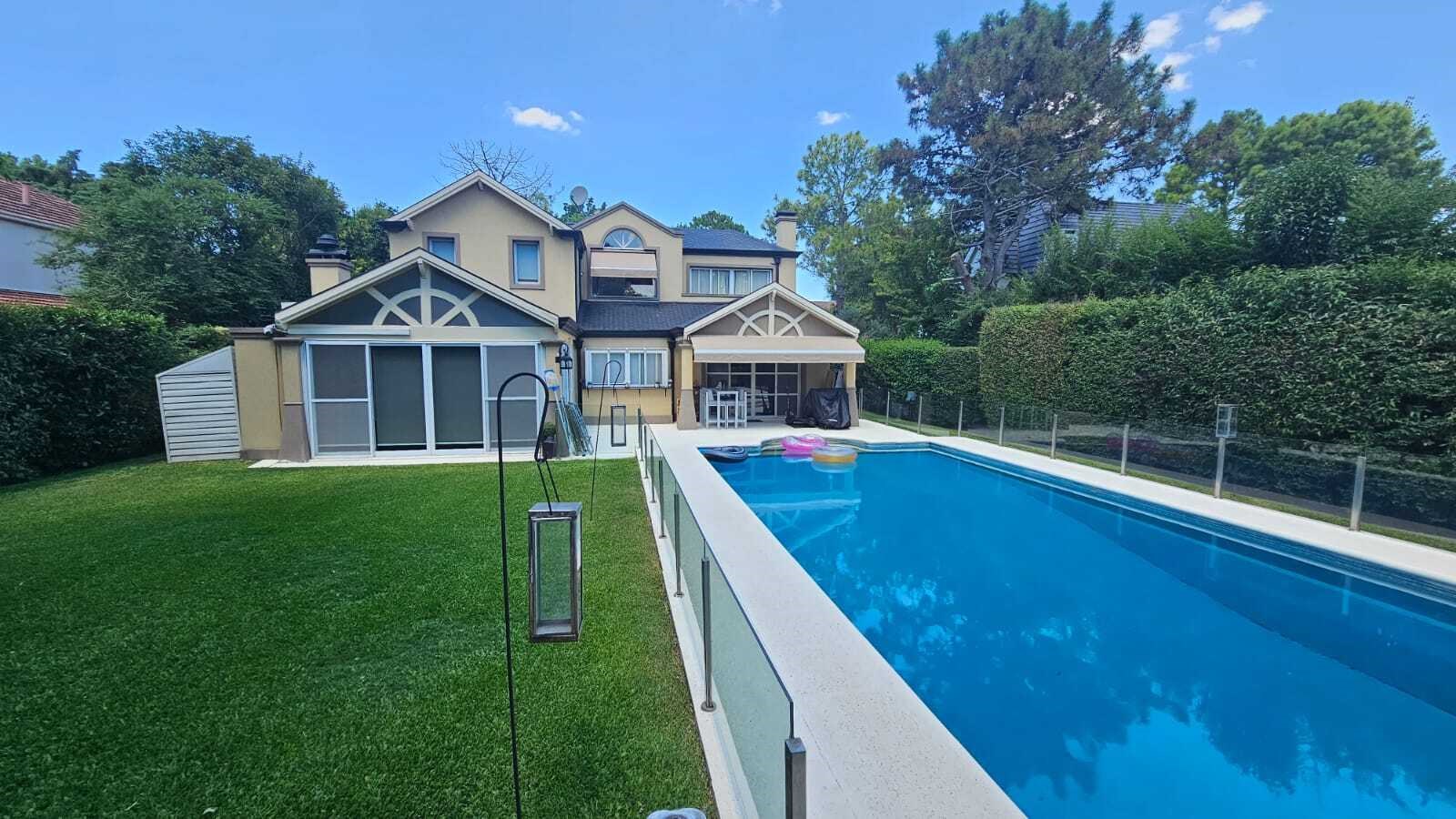 Hermosa casa en venta Casa con excelente diseño y calidad constructiva, en perfecto estado. Amplia - cómoda - funcional. 7 AMBIENTES- Posee 235 m2 cubiertos, desarrollada en dos plantas, sobre un lote interno de 834 m2 en el Barrio Privado Saint Thomas Norte Sur. Rodeada de naturaleza con excelente orientación que permite disfrutar el sol y atardeceres con hermosa galería, parrilla y piscina. Planta Baja: Porche de entrada. Entrada doble puerta en Madera. Amplio hall de recepción y distribución. Pasillo con doble circulación hacia el quincho. Hermoso Living - Comedor con ventanales y aberturas de categoría que dan vistas hacia el frente de la casa y el parque. Moderna Cocina completamente amoblada , bacha, alacenas, bajo mesada , lavavajillas. Dos Toilette. Lavadero completo amoblado con salida al exterior. Dormitorio en suite con vestidor y baño completo. Galería con hermosa vista al parque, espacio de esparcimiento, piscina. Planta Alta: Acceso al primer piso a través de escalera revestida en madera ( pinotea ) Pasillo de distribución muy luminoso abierto en uno de los costados con un hermoso ventanal . Tres habitaciones muy comodas. Baño Completo con antebaño. Todos los ambientes de la casa, en ambas plantas, poseen losa radiante, y splits frio/calor. Tiene una conexión con el exterior a través de amplios ventanales que hacen a una gran luminosidad de los mismos. Exteriores: Galería/quincho con parrilla. Este ambiente, con ventanales, dan lugar a una excelente vista y luminosidad. Piscina. Solarium con pisos y bordes atérmicos y antideslizantes. Estacionamiento de cortesía para 4 vehículos. El patio al frente a la casa así como la vereda perimetral se hallan adoquinados. Servicios: Infraestructura de alta calidad en redes subterráneas de lectricidad - Agua corriente - Gas natural - Desagüe cloacal. Internet -Teléfono - Cable - TV Satelital. Vigilancia – Pilares de servicios. Edificio de acceso y control de accesos. Asfalto con cordón cuneta. Parquización. Nota importante: Todas las medidas e información provista son aproximadas y deberán ratificarse con la documentación pertinente y no compromete contractual a nuestra empresa. Fotografías no vinculantes ni contractuales. MARTILLERO/CORREDOR RESPONSABLE: JULIA SEOANE 4344 CPMCLZ