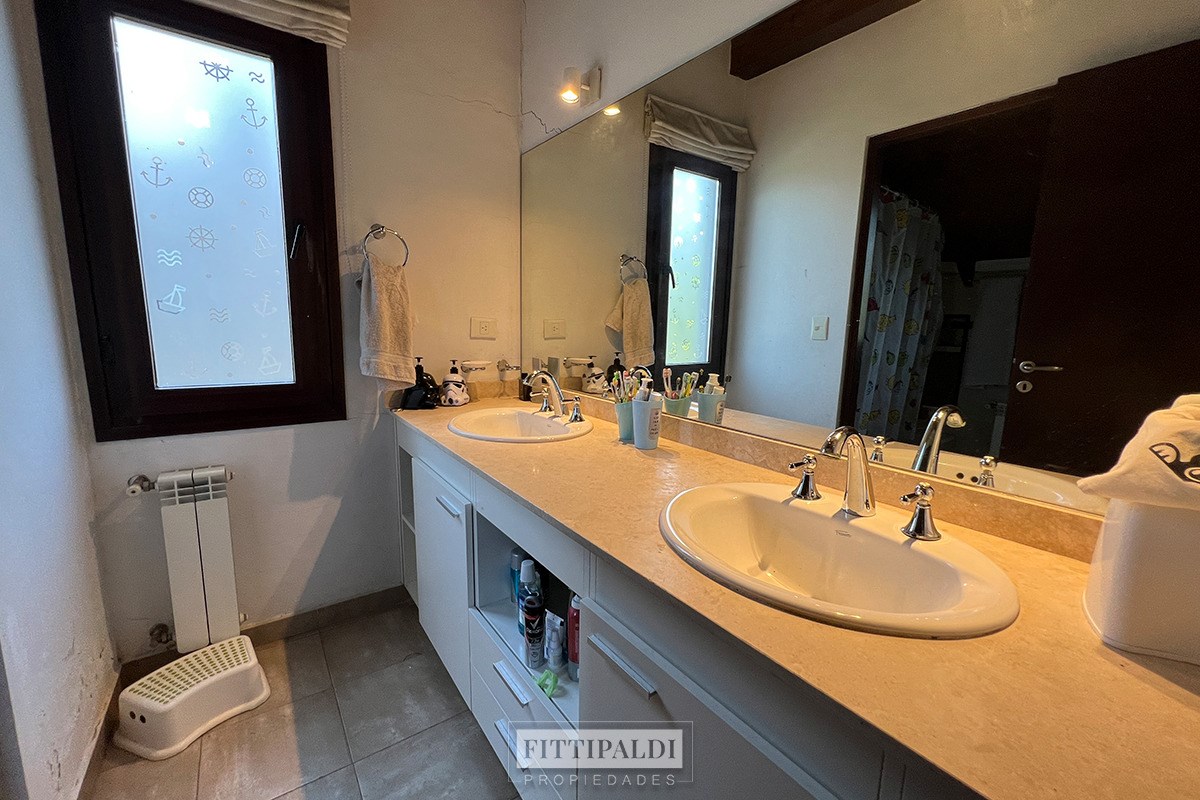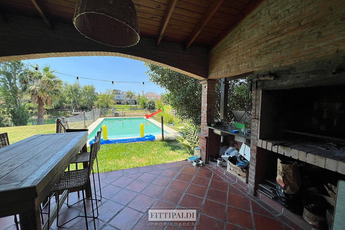 Casa sobre lote a la laguna apto credito , en Santa Clara, Villanueva - Tigre PB: Hall de recepción, Living con hogar a leña, Comedor, Cocina con comedor diario, Escritorio (que puede ser 4to dormitorio). Toilette. Dependencia de servicio con baño. PA: Espacio abierto apto Escritorio o Playroom. 3 Dormitorios, principal en suite y los otros 2 comparten un baño completo. Aberturas de PVC con doble vidrio en la planta alta. Calefaccion por Radiadores. Garage cubierto para 1 auto. Amplia Galería con Parrilla. Pileta. Riego automatizado por aspersión Paola Fittipaldi Mat CMPSI 7175