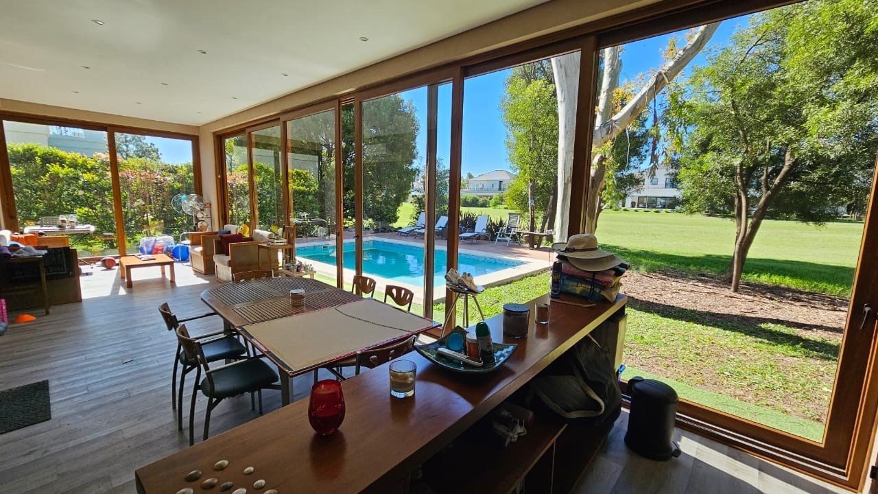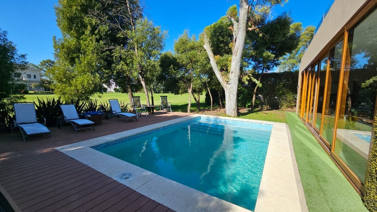 HERMOSA CASA en VENTA! Diseño y arquitectura Moderna CON FONDO AL GOLF EN SAINT THOMAS OESTE. 7 AMBIENTES - Desarrollada en 2 plantas, con 370 m² construidos sobre un lote de 700 m². Situada en un LOTE INTERNO en SAINT THOMAS OESTE, rodeada de naturaleza con vistas abiertas al GOLF. Su estilo y fachada exterior combinan la calidez de la madera con la piedra, brindando equilibrio y una imponente estética visual. Se caracteriza por su sofisticación, moderación y naturalidad. PLANTA BAJA: Porch de entrada que conecta con la cochera. Puerta principal de Madera con un paño fijo que da luz a la entrada. Hall - recibidor- Escalera con escalones revestidos en madera con barandas de acero inoxidable y vidrios laminados. Amplio Living con ventanales y aberturas de categoría que dan hacia la galería con hermosa vista al parque. Moderna Cocina con Isla- Desayunador, integrada al comedor diario totalmente equipada (cocina – muebles – alacenas- bajo mesada- espacio para lavavajillas). Lavadero interno con acceso desde la cocina, muebles bajo mesada y alacenas. Baño completo con antebaño. Home office/ Sala de Estudio o Posible 4to dormitorio. El comedor diario y living están en el mismo ambiente muy luminoso, con acceso a la Galería. Galería con hermosa vista al parque, espacio de esparcimiento, piscina. PLANTA ALTA: Acceso al primer piso a través de escalera abierta. Pasillo de distribución muy luminoso, abierto en un costado, con hermoso ventanal con vista al frente. 4 Dormitorios: Master Suite principal de grandes dimensiones, con baño completo, vestidor, con hermosa vista. Dos dormitorios comparten con baño privado, hidromasaje y vestidor. Sala de estar- descanzo. Dormitorio con baño privado. EXTERIOR: Cochera Cubierta para 2 vehículos conecta con el porch de entrada a la casa. Estacionamiento de Cortesía para 3 vehículos. En el contrafrente de la casa se destaca su hermosa vista. Galería/ Quincho cubierto con parrilla convencional a gas y horno con anafe. Toda la parrilla y anexos con cerramiento de acero inoxidable. Toilette lugar de guardado, mesada y bacha todo con excelente cerramiento. Hermosa Piscina climatizada con playa húmeda. solarium con pisos y bordes atérmicos. Hidromasaje Climatizado. Sauna Húmedo. Grama en todo el parque. Riego automático. Con un diseño totalmente equilibrado el parque brinda sensación de Relax y diversión, muy natural con vegetación y plantas. La vivienda está construida con materiales de primera calidad, muebles, detalles y terminaciones de diseño, pisos de porcelanato , aberturas A30 DVH de PVC para mejor aislación. Mosquiteros. Mesada de cocina silestone, Los muebles de cocina, lavadero y galería con mesadas, y los interiores de placares revestidos. Cocina con horno a gas y anafe eléctrico. Calefacción por losa radiante sectorizada por plantas y refrigeración por splits en todos los ambientes. Todos los servicios, luz, gas, agua, cloacas. Sobre el Barrio: Saint Thomas Oeste es el Country más prestigioso de Canning, cuenta con una abundante forestación, se ubica a cinco minutos del centro y de los comercios más importantes de Canning. En el predio excepcional de 360 hectáreas, 220 destinadas a espacios verdes permanente, se desarrolla el MasterPlan con 5 barrios privados: Norte, Sur, Centro, Este y Oeste. Los 5 barrios cuentan con 5 canchas de golf de 18 hoyos, canchas de fútbol, tenis, paddle, hockey, piscinas para adultos y niños abiertas y cubiertas, gimnasios y spa e importantes áreas destinadas a juegos infantiles. Las canchas de golf están diseñadas dentro de la explosión de colores que nos regala la exuberante y vistosa forestación. Seguridad 24hs. Te esperamos para recorrer SAINT THOMAS ESTE/OESTE juntos! Contactanos para conocer con más en detalle cada propiedad, lotes y posibilidades! Martillero responsable : SEOANE JULIA Mat. 4344 CPMCLZ AVISO LEGAL: Todas las medidas e información suministrada y publicada son aproximadas, queda sujeta a la verificación con la documentación correspondiente por parte de los interesados y sus profesionales asesores, previo a realizar una operación. Las descripciones del inmueble, medidas, superficies, ya sean arquitectónicas o funcionales, fotos o características, valores de impuestos, expensas, servicios etc, pueden contener alguna inexactitud y son meramente descriptivas, no compromete contractualmente a nuestra empresa. Fotografías no vinculantes ni contractuales.